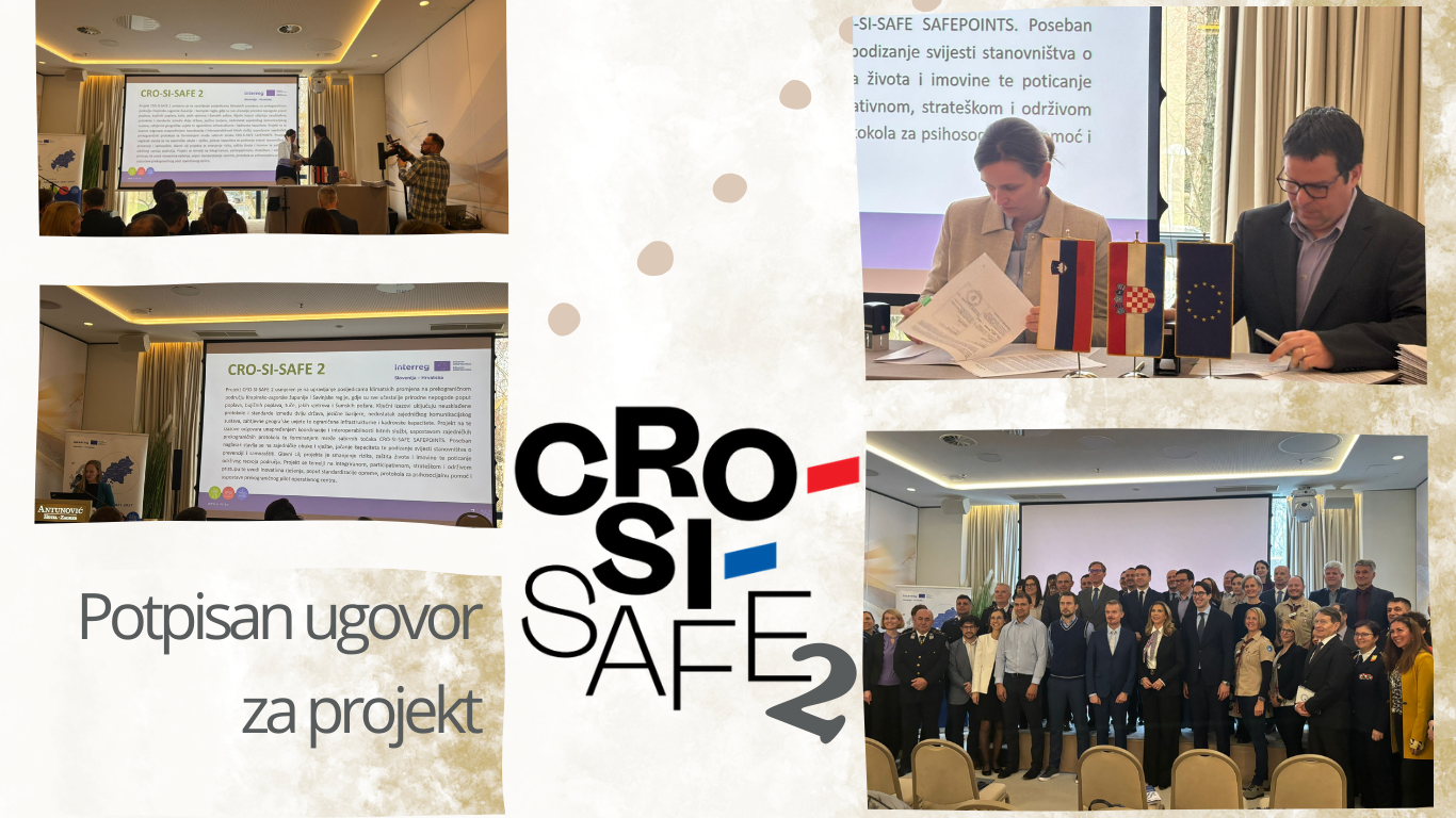 U Zagrebu je 02. ožujka 2026. godine ravnateljica Karolina Barilar u ime projektnog partnerstva s Ministarstvom za koheziju i regionalni razvoj Republike Slovenije u svojstvu upravljačkog tijela Interreg Programa Slovenija-Hrvatska 2021.-2027., potpisala Ugovor o sufinanciranju iz sredstava EFRR-a za standardni projekt za projekt Jačanje otpornosti lokalnih zajednica na posljedice klimatskih promjena u Krapinsko-zagorskoj županiji i Savinjskoj regiji – CRO-SI-SAFE 2, čime i službeno počinje njegova provedba.